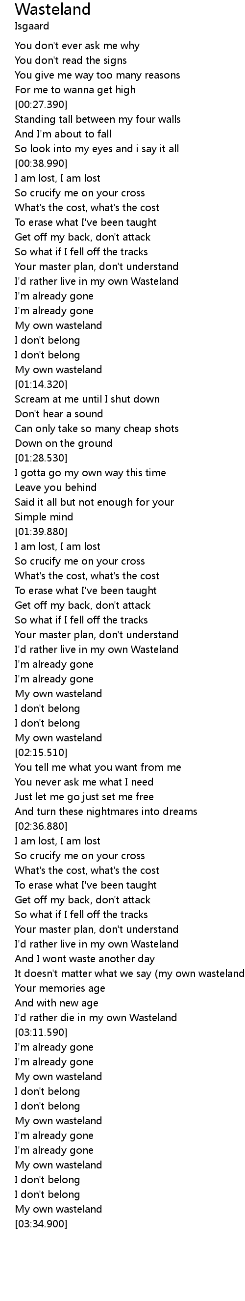 It doesn't matter what we say (my own wasteland) |