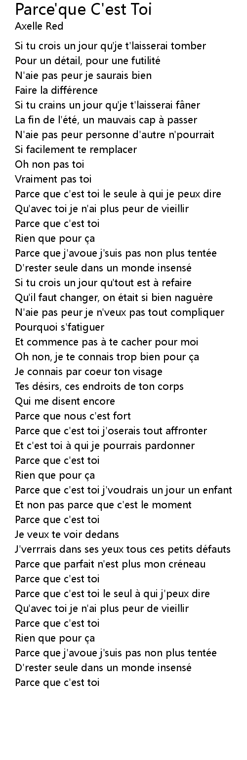 | Parce que c'est toi j'voudrais un jour un enfant | |