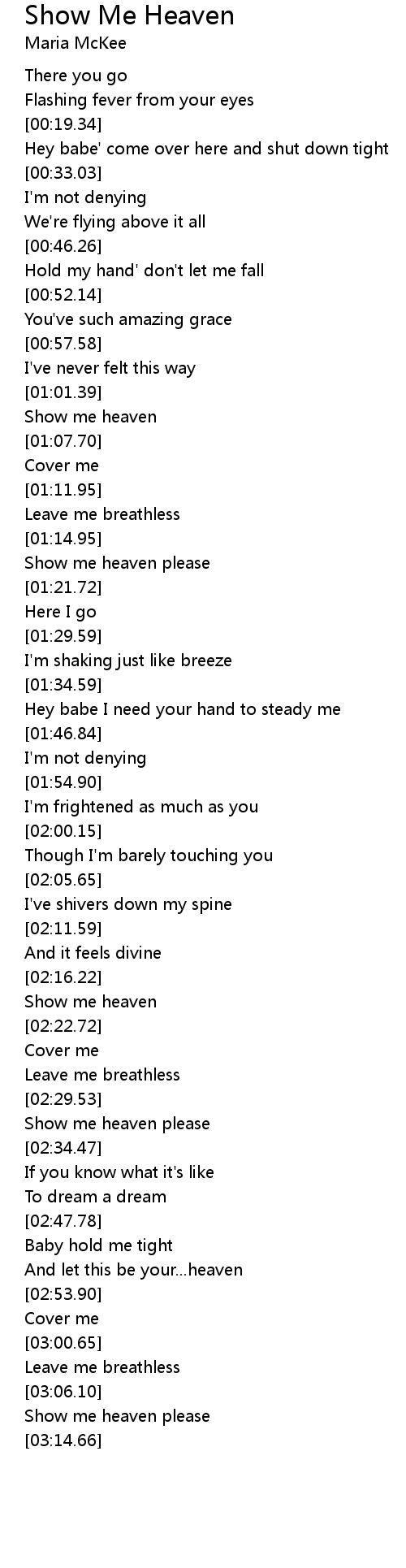 Show Me Heaven Lyrics