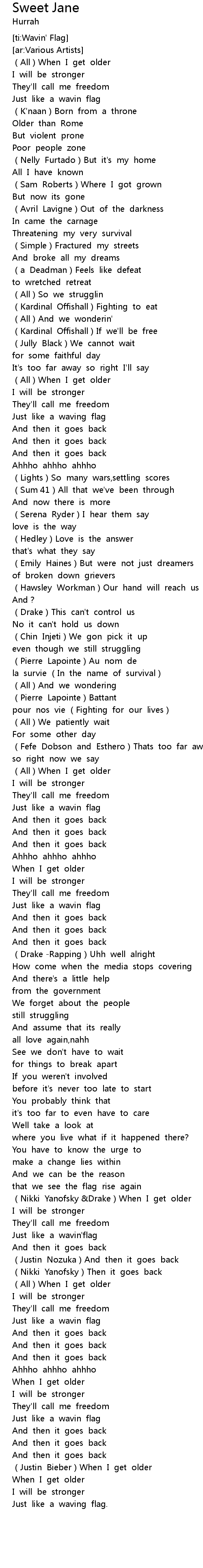 | [03:06.75] | Just like a wavin'flag |