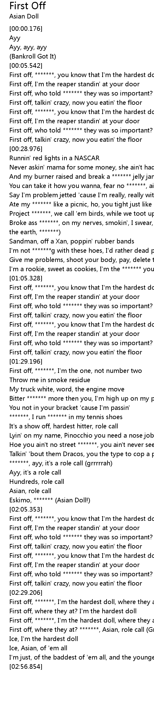 First off, where they at? *******, Asian, role call (Grrrrrah) |
