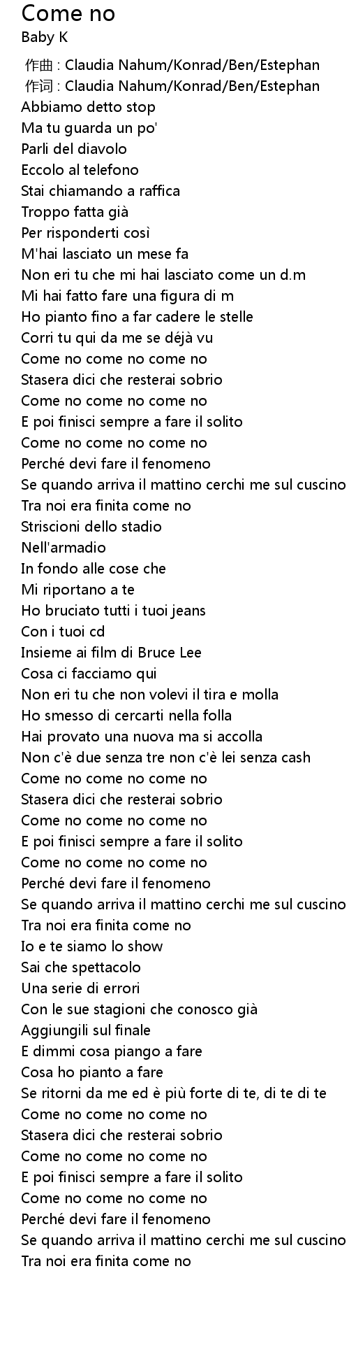 | [00:41.59] | Come no come no come no |