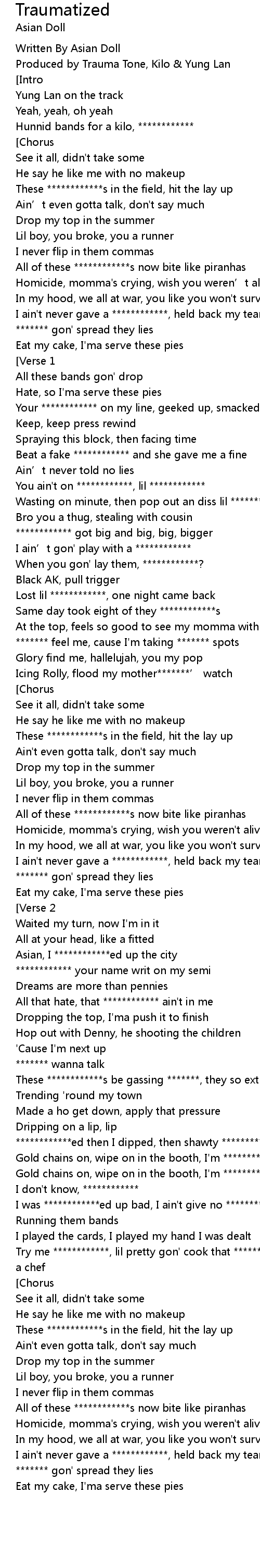| [00:01.082] | Produced by Trauma Tone, Kilo & Yung Lan |