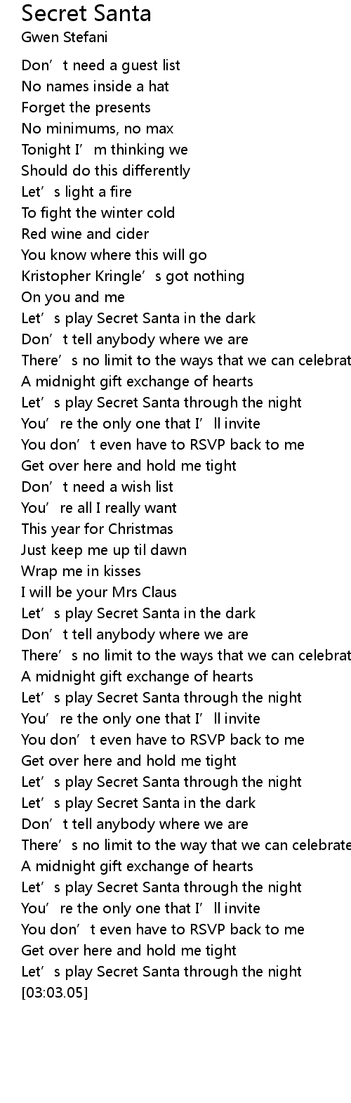| [02:41.76] | Let' s play Secret Santa through the night |