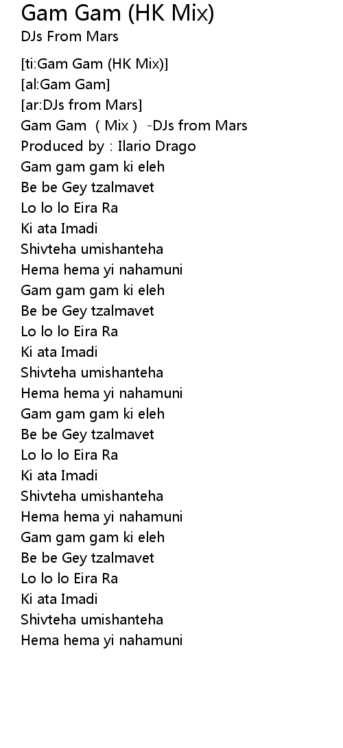 | [00:00.314] | Gam Gam (Mix) -DJs from Mars |