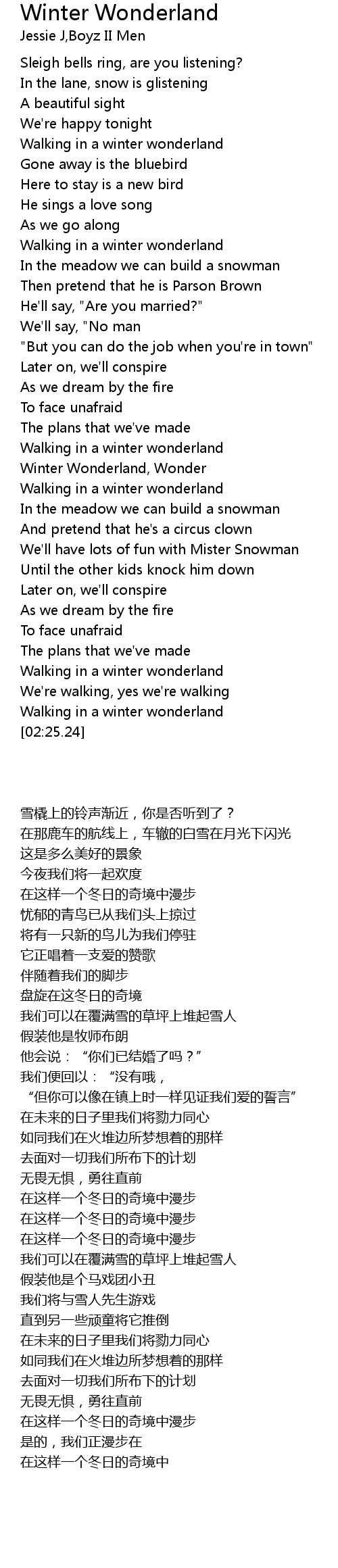 Winter Wonderland, Wonder |