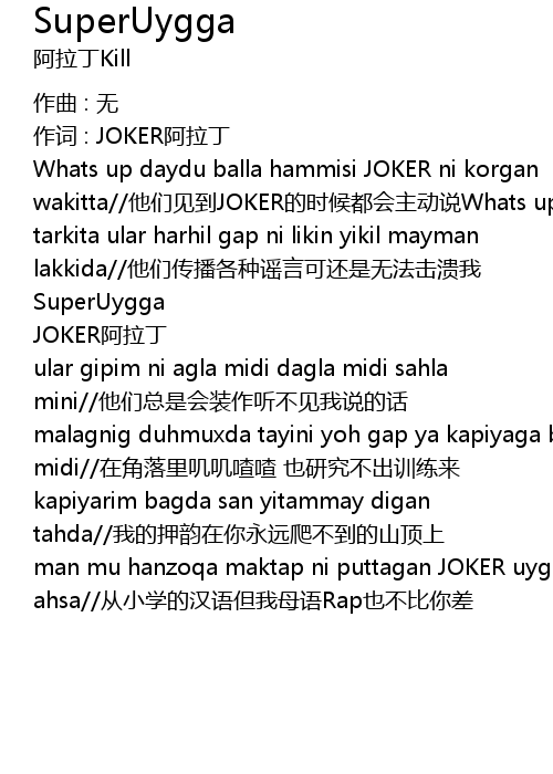| man mu hanzoqa maktap ni puttagan JOKER uygurqa Rap dimu ahsa cóng xiǎo xué de hàn yǔ dàn wǒ mǔ yǔ Rap yě bù bǐ nǐ chà |