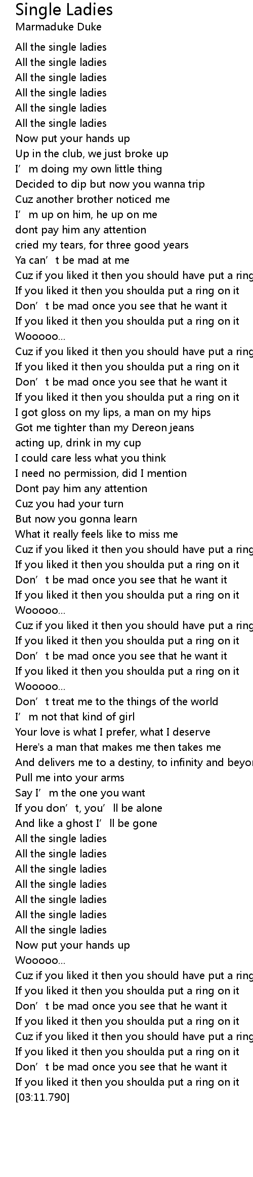 | [03:03.320] | If you liked it then you shoulda put a ring on it |
