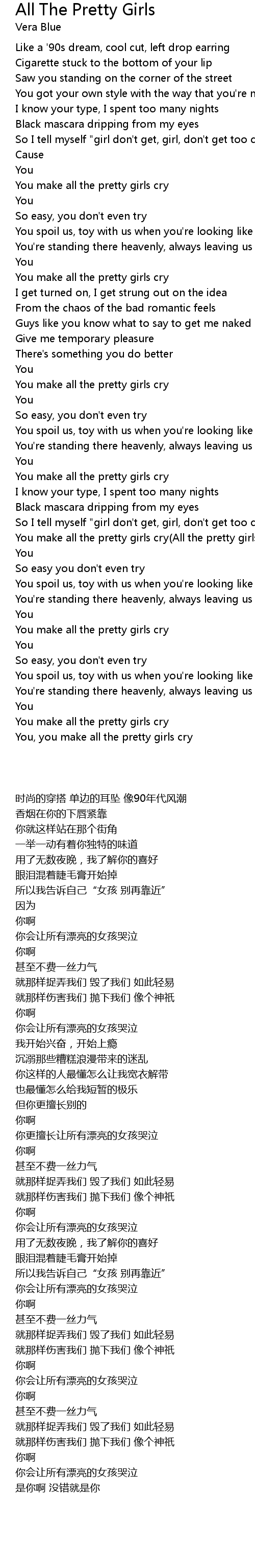 You make all the pretty girls cry(All the pretty girls cry) |