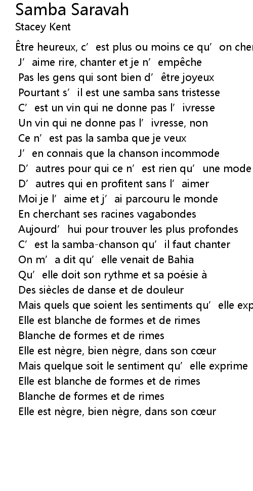 | Pourtant s' il est une samba sans tristesse | |