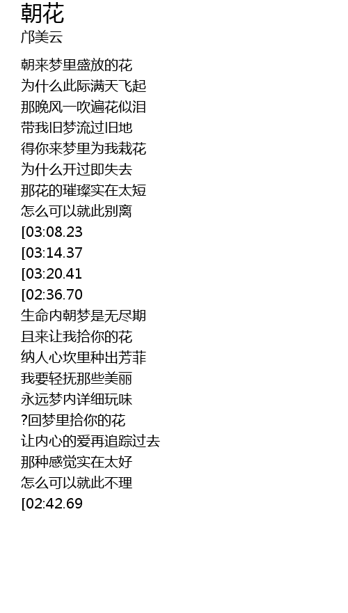 | [03:26.03][02:36.70][01:22.72] | 朝梦内那芬芳无尽期 |