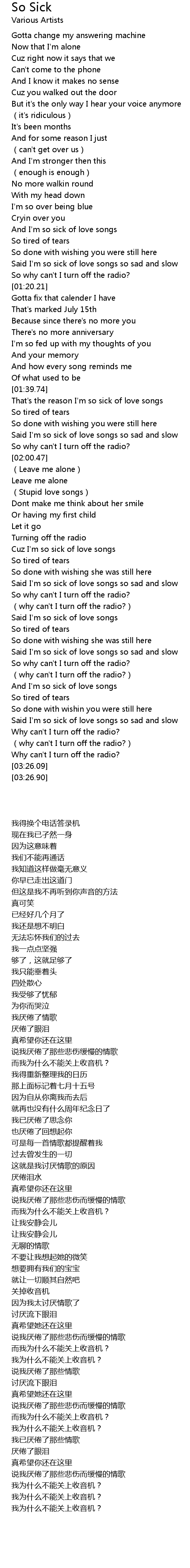 | [02:21.07] | Cuz I'm so sick of love songs |