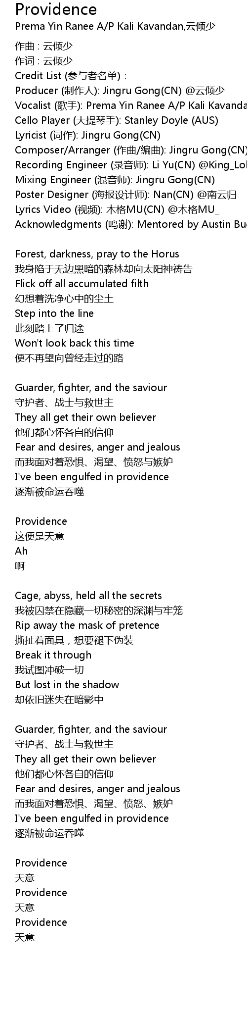 | Song | Providence |