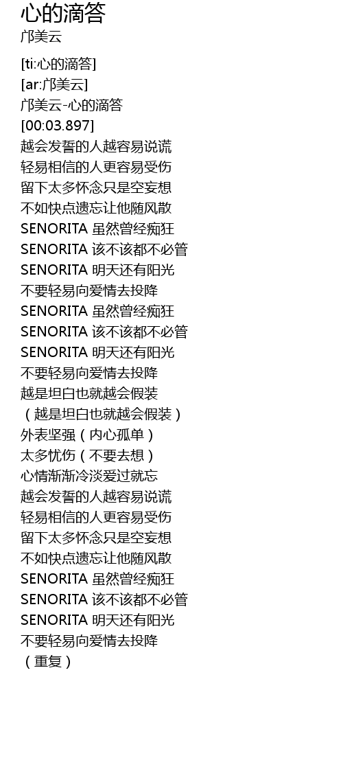 | [02:57.643] | SENORITA 明天还有阳光 |