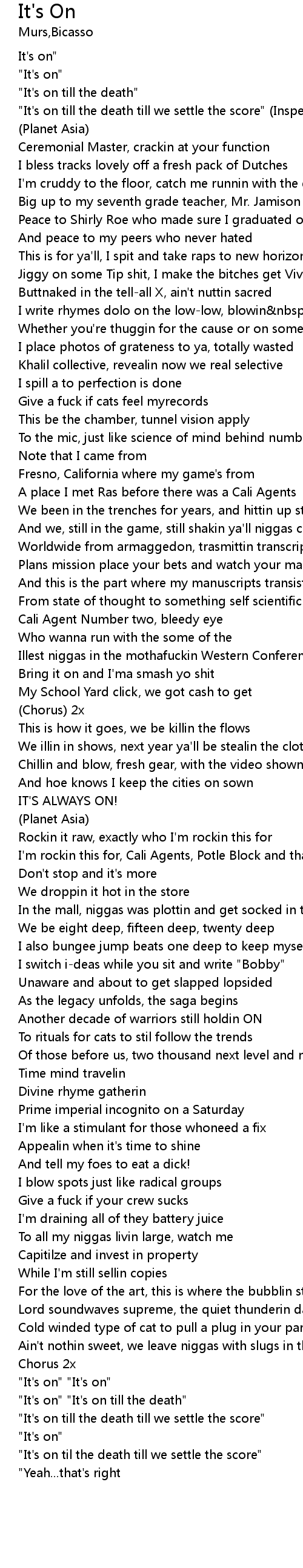 | "It's on" | |