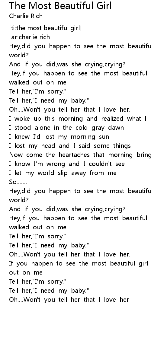 Hey,if you happen to see the most beautiful girl that walked out on me |