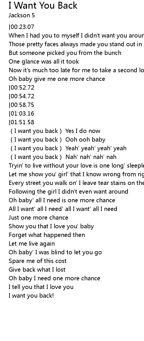 | [01:10.55] | (I want you back) Ooh ooh baby |
