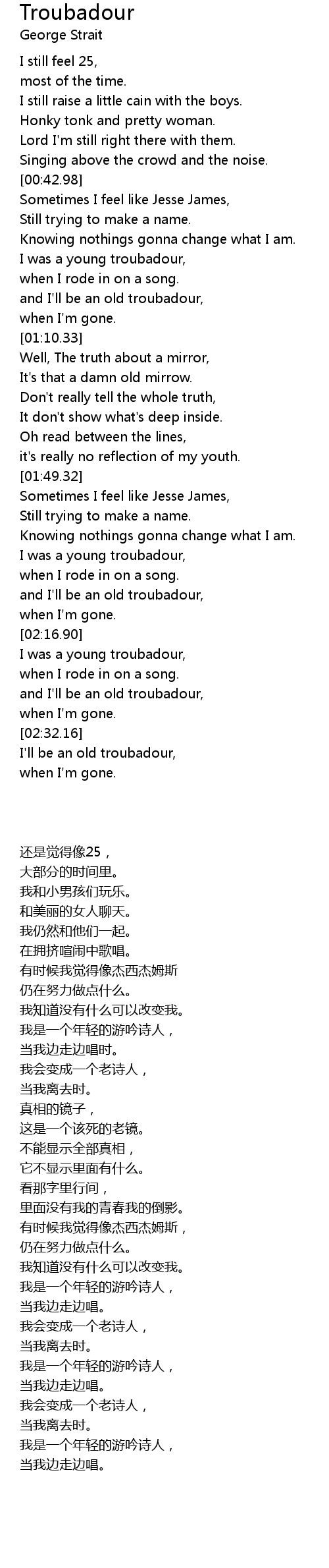 and I'll be an old troubadour, |
