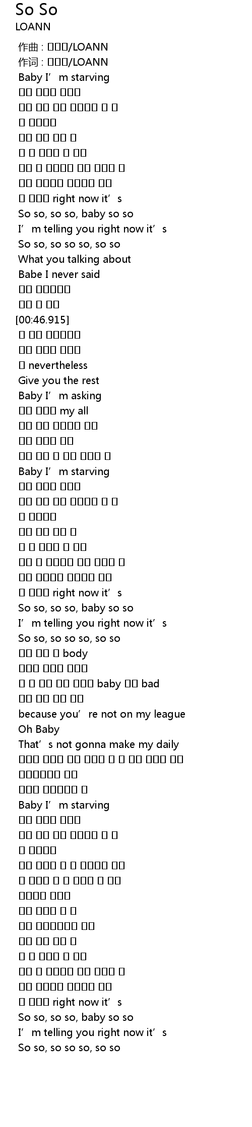 | [00:00.747] | Baby I’m starving |