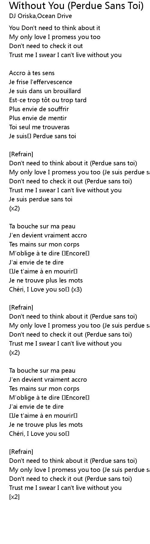 | Song | Without You (Perdue Sans Toi) |