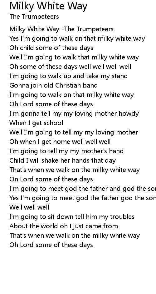 Well I'm going to walk that milky white way |