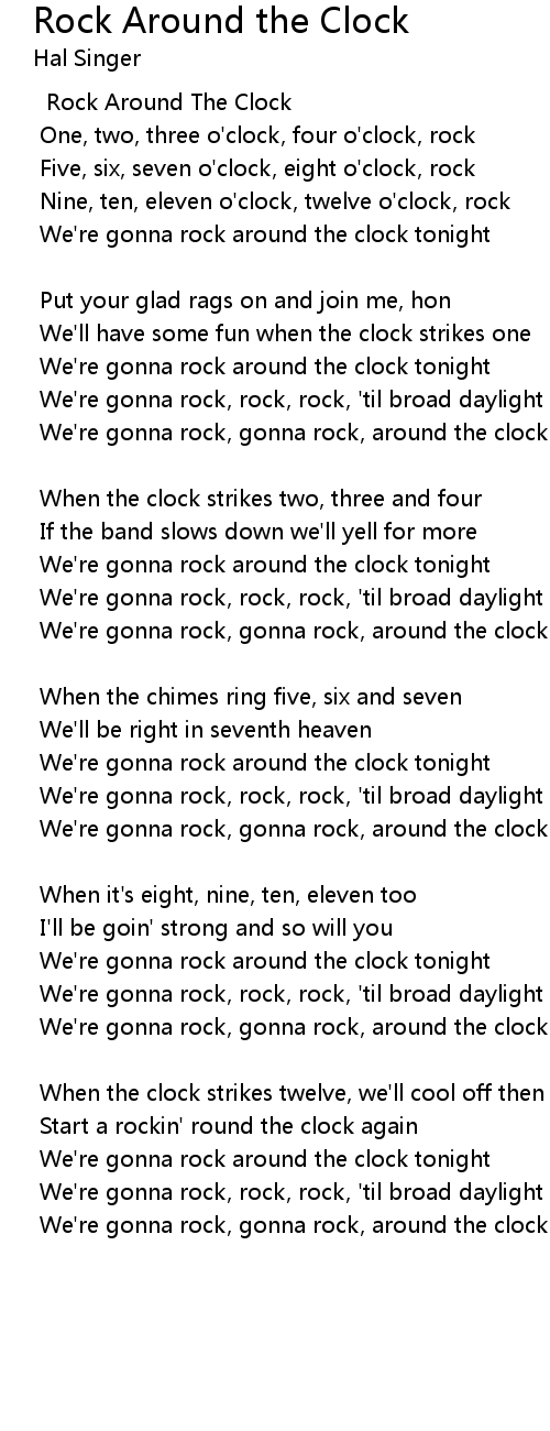 Five, six, seven o'clock, eight o'clock, rock |