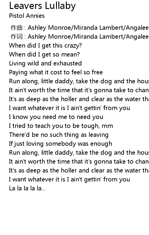 | [00:01.000] | 作词 : Ashley Monroe/Miranda Lambert/Angaleena Presley |