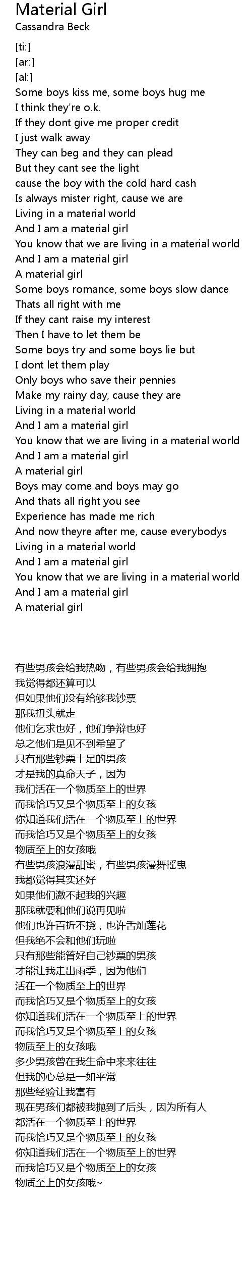 And I am a material girl |