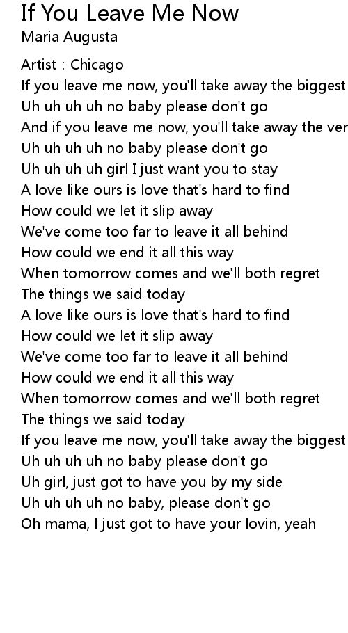 | If you leave me now, you' ll take away the biggest part of me | |