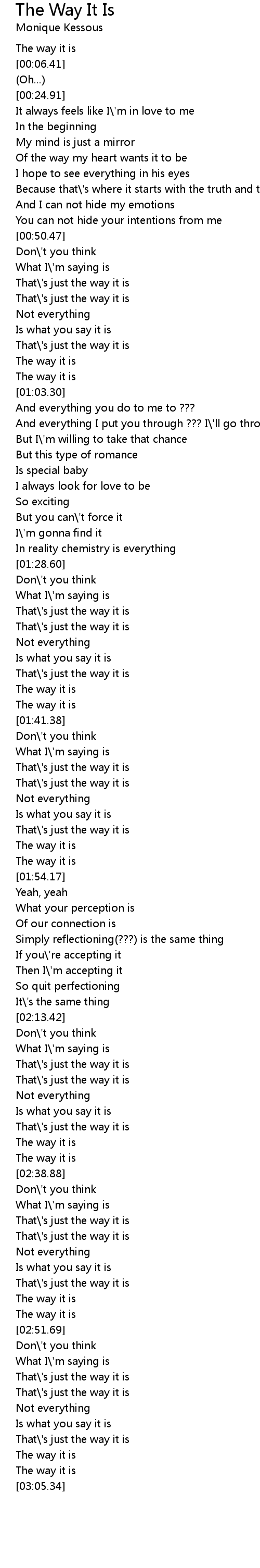 The Way It Is Lyrics