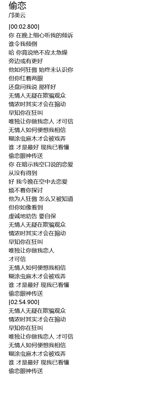 | [02:52.270] | tōu liàn yǎn shén chuán sòng |