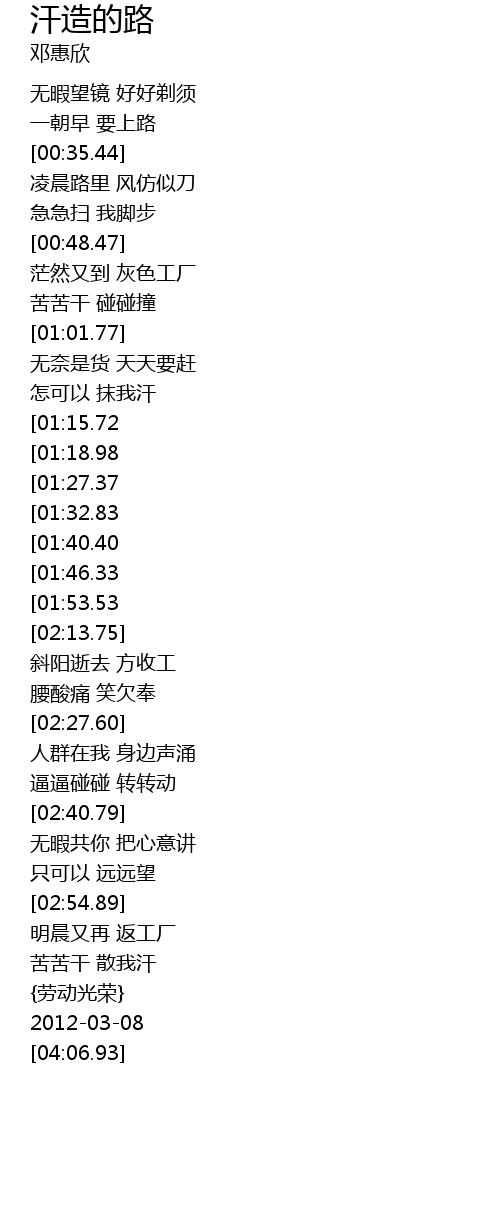 | [03:50.04] | {劳动光荣} |