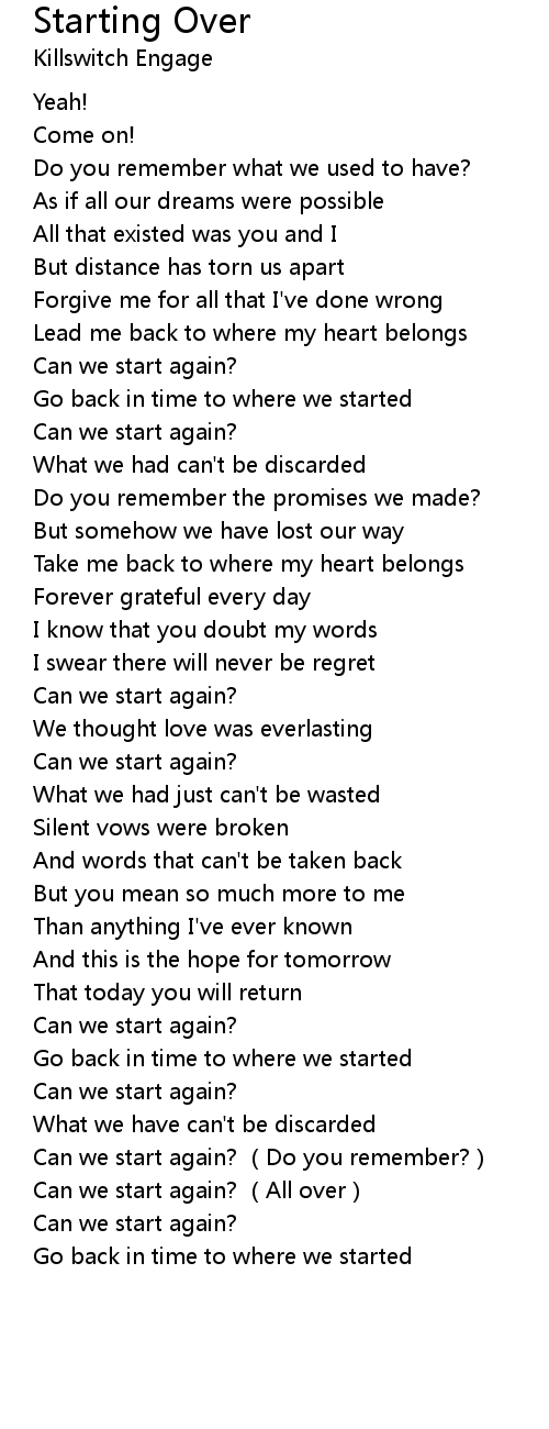 | [03:30.93] | Can we start again? (All over) |