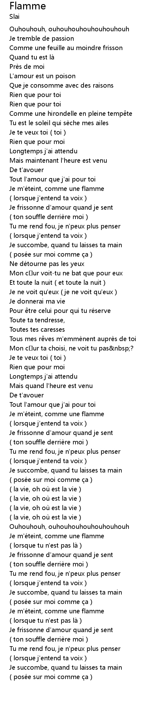 | Song | Flamme |