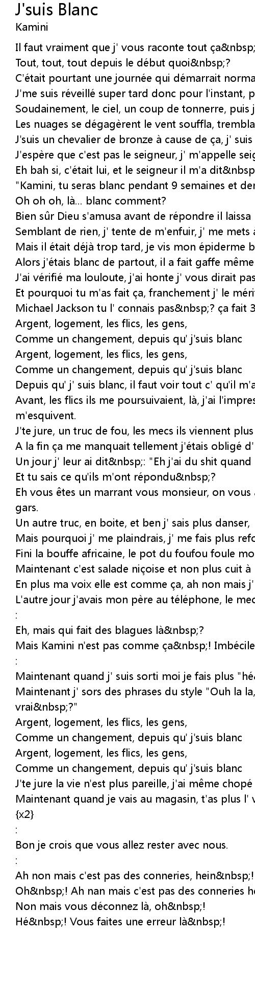 | Song | J'suis Blanc |