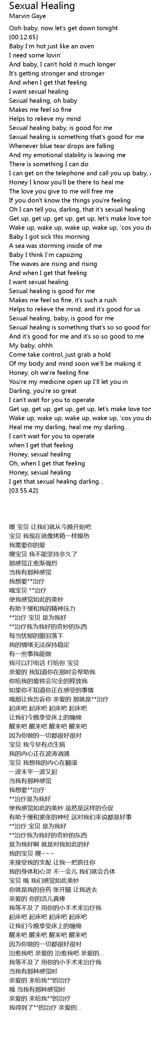 Sexual healing baby, is good for me |