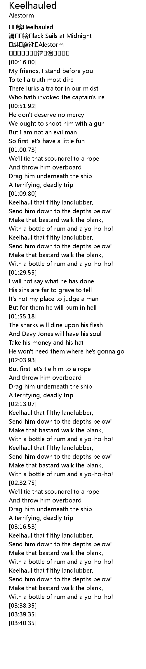 | [03:20.72] | Keelhaul that filthy landlubber, |