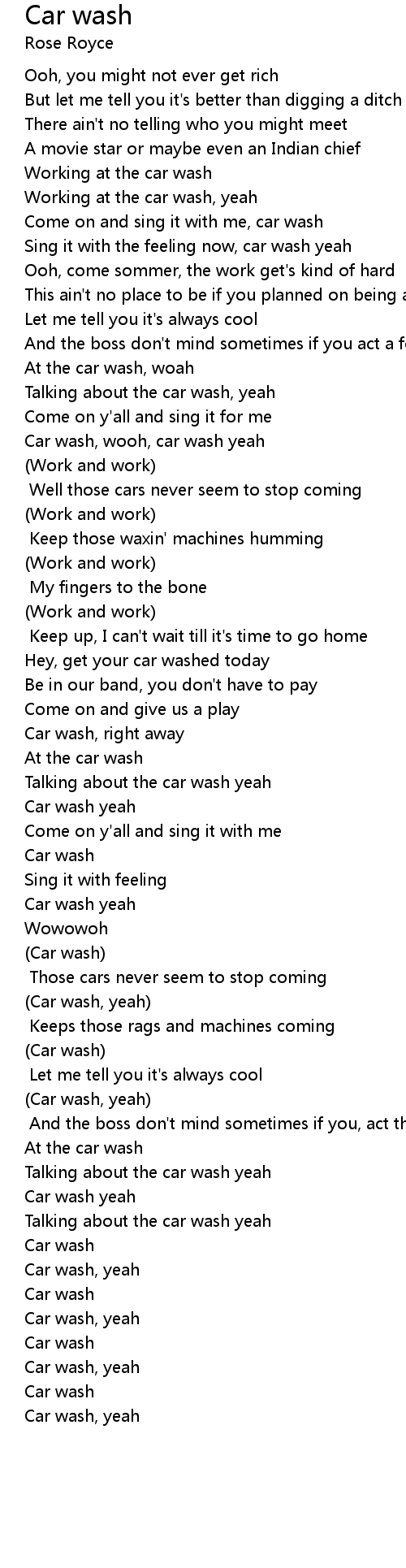 Car wash Lyrics