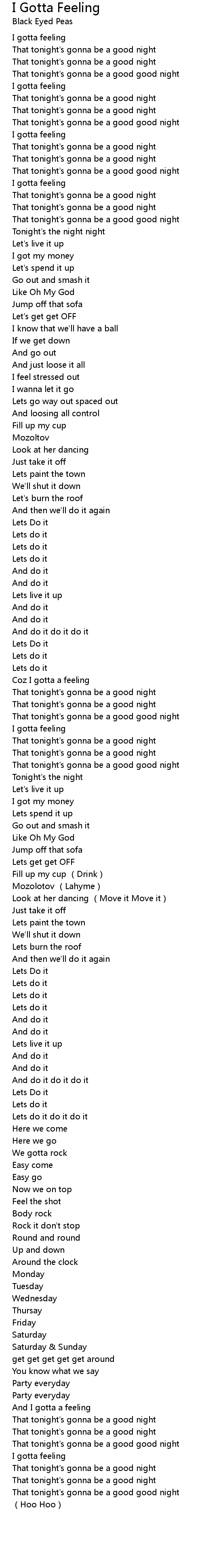 | [02:41.030] | That tonight' s gonna be a good good night |