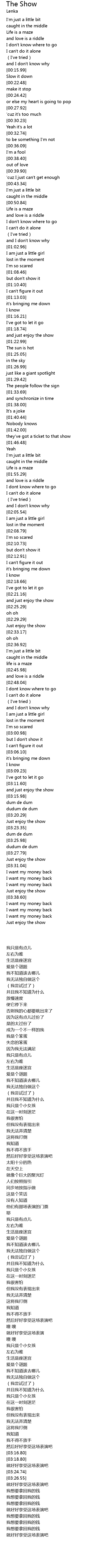 | [03:29.74] | Just enjoy the show |