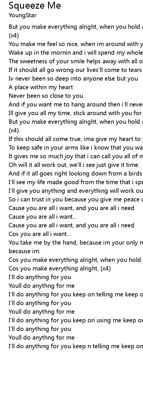 Cos you make everything alright, when you hold and you squeeze me tight |
