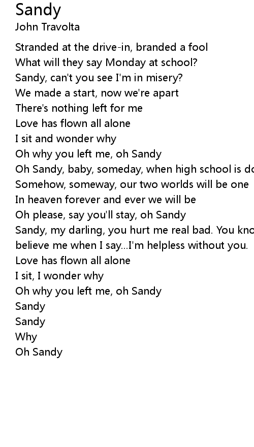 Sandy, my darling, you hurt me real bad. You know it's true. But baby, you gotta believe me when I say...I'm helpless without you. |