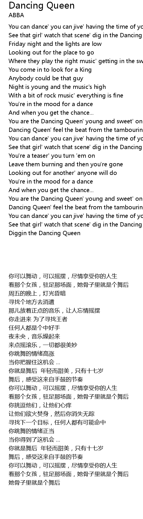 | [02:39.15] | You are the Dancing Queen' young and sweet' only seventeen |