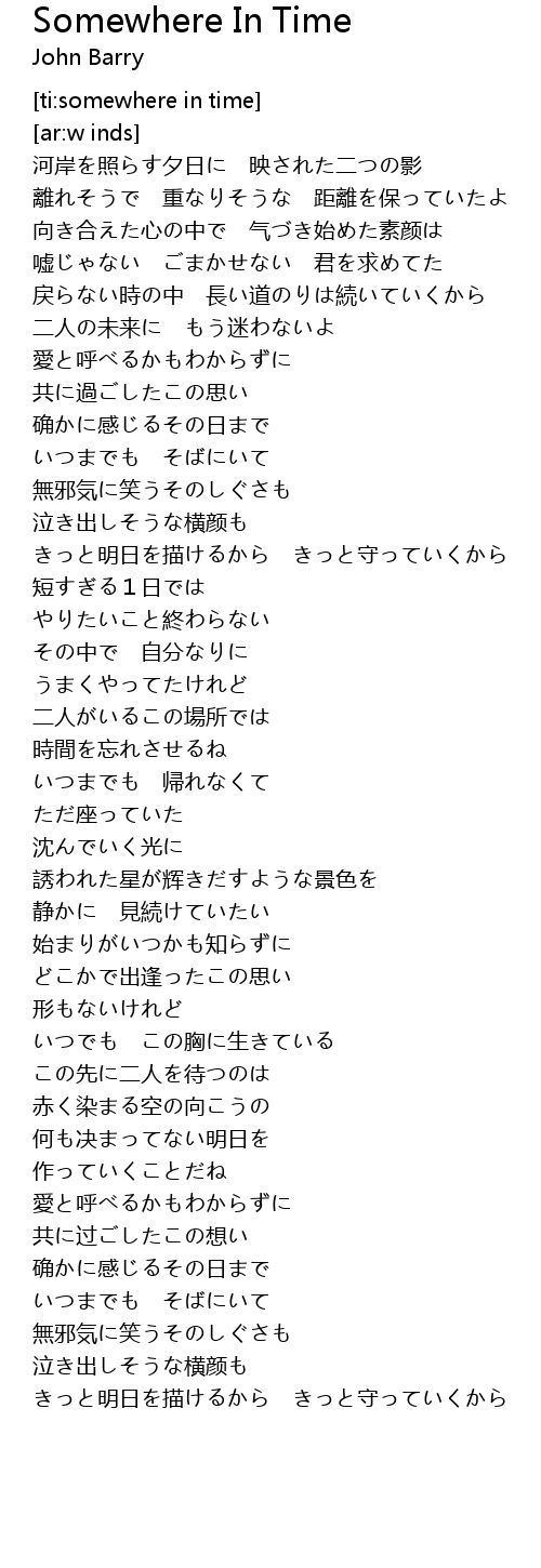 | [00:09.50] | 河岸を照らす夕日に 映された二つの影 |