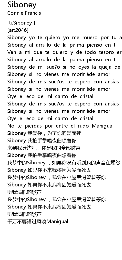 | [02:51.970] | Siboney 如果你不来我将因为爱而死去 |