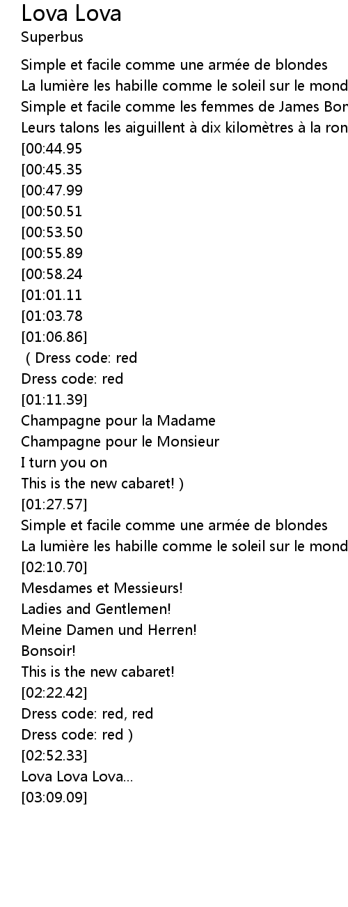 | [01:49.16][00:55.89] | Lova Lova Lova |