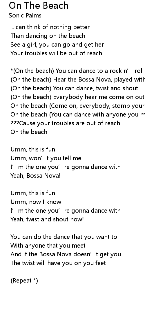 | *(On the beach) You can dance to a rock n’ roll | |