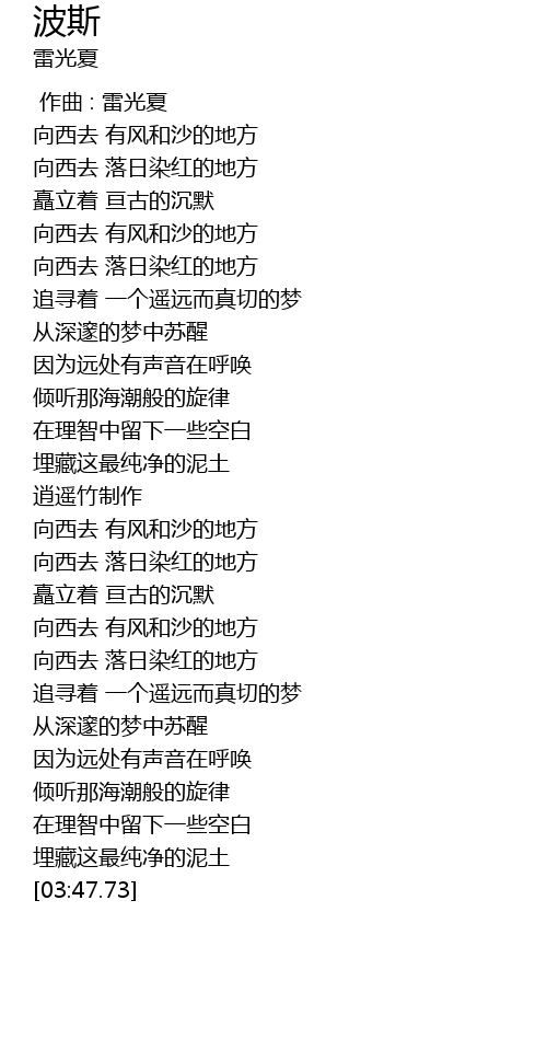 | [00:53.83] | 向西去 有风和沙的地方 |