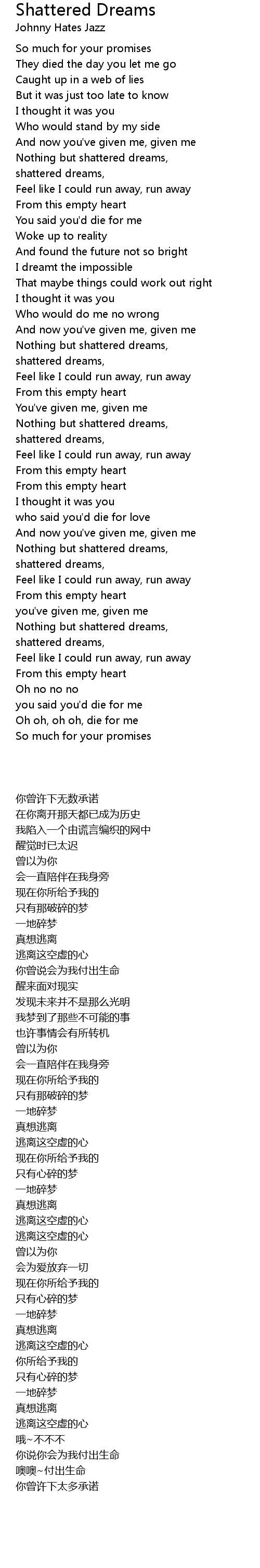 shattered dreams, |