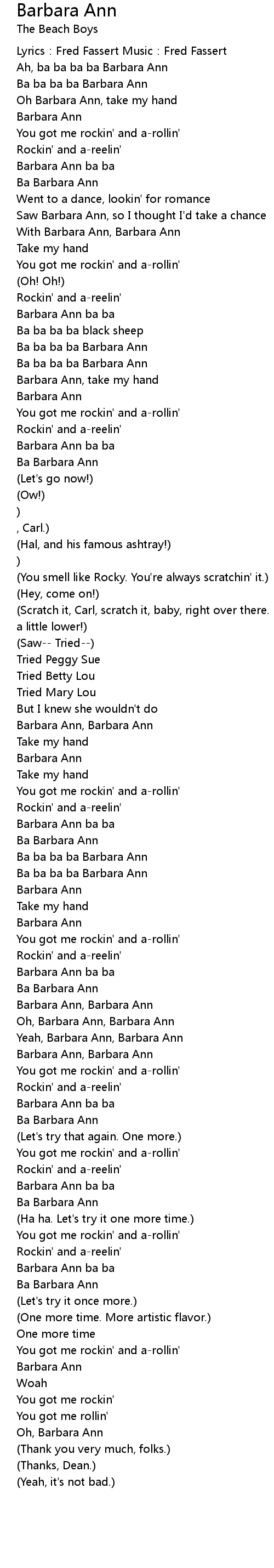 | Saw Barbara Ann, so I thought I'd take a chance | |